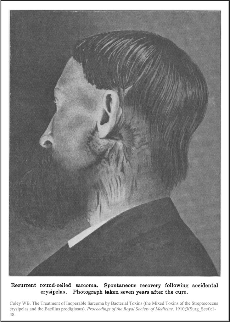 Decades later, Williams Coley heard about the curious case of a man with inoperable sarcoma that disappeared after erysipelas developed. The remission was durable out to at least 7 years. After hearing about this case, Coley wondered whether the intentional injection of Streptococcus pyogenes might work too. In 1893 he reported tumor regression in several patients with this therapy. He was so confident in these results that the first conclusion of this paper reads “the curative effect of erysipelas on malignant tumors is an established act.” The concoction came to be known as Coley’s toxins and it was used for decades.