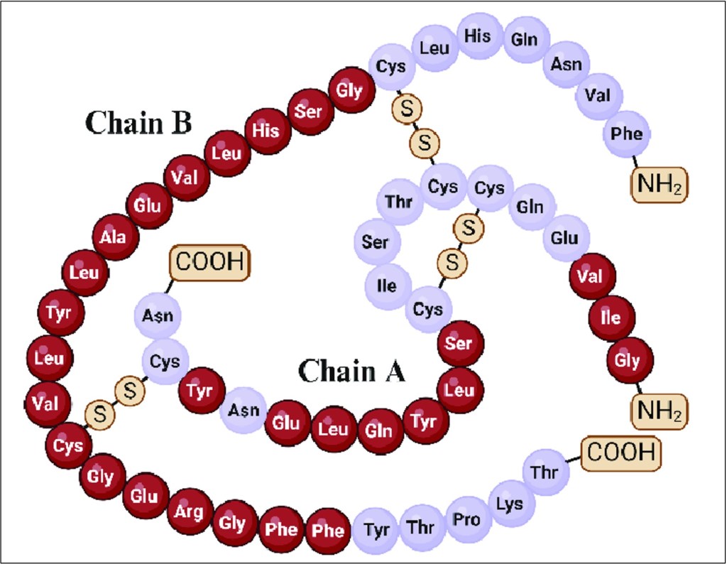 One big reason is that insulin is … big. It’s composed of 51 amino acids and weighs in at 5.8 kD (technically, >50 amino acids makes it a protein, but most call it a peptide). This large size leads to poor absorption – molecules greater than about 700 Daltons (0.7 kD) are not well absorbed. Small peptides like octreotide (8 amino acids, 1 kD) can have oral formulations. For the most part, though, large peptides like insulin and even larger proteins like IVIG and albumin must be administered with injections or infusions to get absorbed.