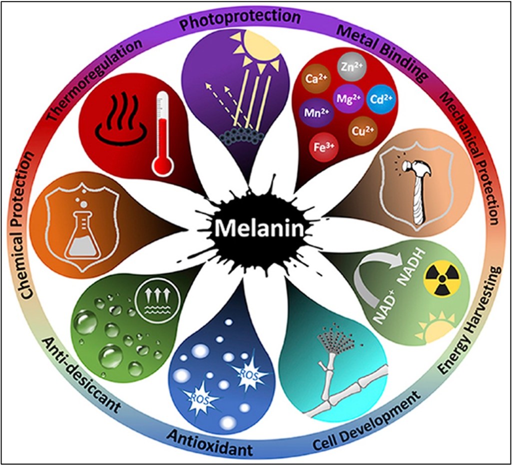 As cool as this tiny bacteria is, the melanin in fungi also serves a similar purpose, where extreme radioresistance might be an epiphenomenon related to being able to protect DNA from any source, including desiccation. This paper from the fungal world suggests that melanin in fungal cell walls serves a function beyond simply protecting against radiation. Having melanin in a fungus’ cell wall just makes it sturdier in general, including being more resistant to things like desiccation, heat, and physical damage to cell walls. It protects fungi against the human immune system, thus making melanized fungi more pathogenic.