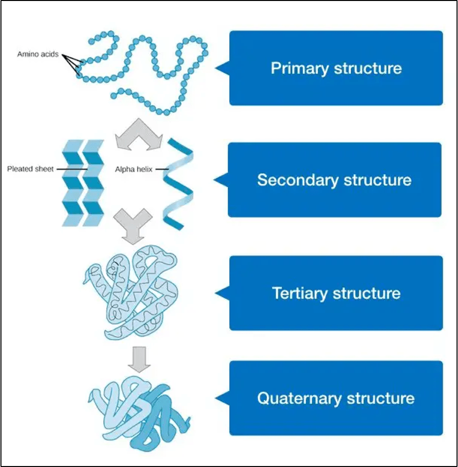 In the case of pathologic prions, a change in the folding pattern leads to disease. Proteins fold on themselves. The primary structure of proteins is the amino acid sequence that determines how the protein folds. This is followed by secondary folding, which involves two types of patterns called motifs: beta-sheets or alpha-helices. With these neurotoxic prion proteins, either a genetic mutation or an acquired infectious prion protein initiates a cascade of conversion of alpha-helices to beta–sheets. The proteins then start to stack and roll into themselves as their secondary structures all snap into alignment with each other.